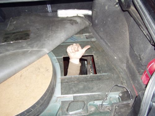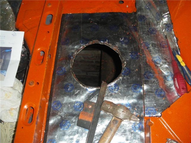 З.Ы.: передняя граница этого отверстия под заглушку и будет передней границей лючка. от него вообще можно ножницами нормальными по металу разойтись, коли болгарка смущает. я пилил бормашиной технической маааленьким отрезным диском. размер дырки подбирал по размеру крышки, которая закрывает доступ к задним фонарям на хетче и седане, ее потом удобно поставить в качестве заглушки.